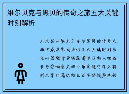 维尔贝克与黑贝的传奇之旅五大关键时刻解析